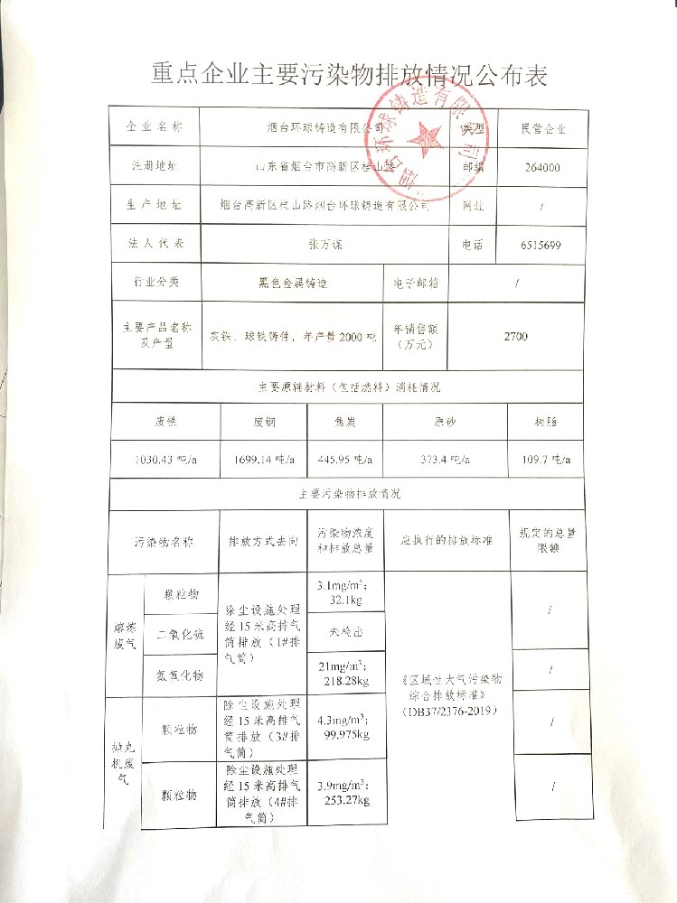 重點企業主要污染物排放情況公布表